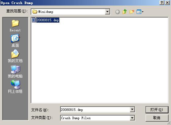然后找到你的minidump文件夹,dump文件一般是”时间.dmp”如图: