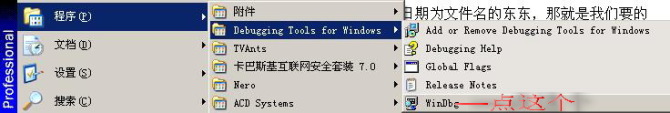 蓝屏后重启,在minidump文件夹下会出现一个以日期为文件名的东东,那就是我们要的了。接下来打开windbg,点屏幕左下的 “开始”,如下图: