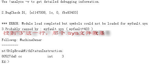 第三行 PROCESS_NAME: XXX.exe 这个是导致错误的进程,查出是什么文件导致的蓝屏后,再看这里就知道是谁调用了错误文件,比如你查出123.sys导致蓝屏,但你查不到123.sys是哪个程序调用的,就可以用这个方法来看看,比如查出了是456.exe,你就可以在机子上或者网上搜索相关信息了。