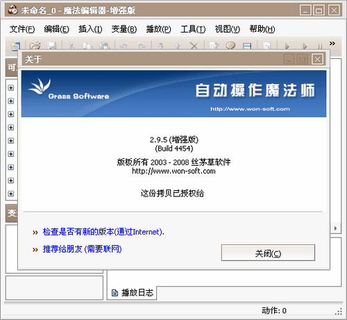 自动操作魔法师 2.9.5[绿色破解版] 这个破解的不完全 之破解了一半 里面有两个编辑组件 编辑器正常 但是管理器还是需要注册是试用的 希望楼主加油 把这个补充一下 谢谢 呵呵 支持楼主