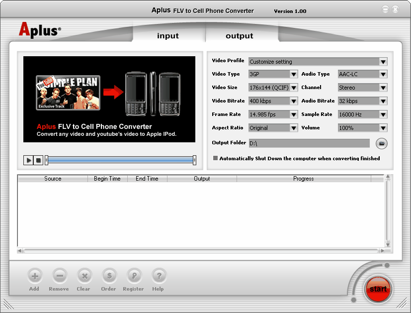 现在越来越普及,很多人上传自己的搞笑视频剪辑,以YouTube的,并分享他们的影片。 Aplus的FLV时,以3gp转换器是一个工具转换成FLV时,以3gp视频格式, Aplus的FLV时,以3gp转换器是专业和良好的转换软件,它可以将您最喜爱的FLV视频手机。