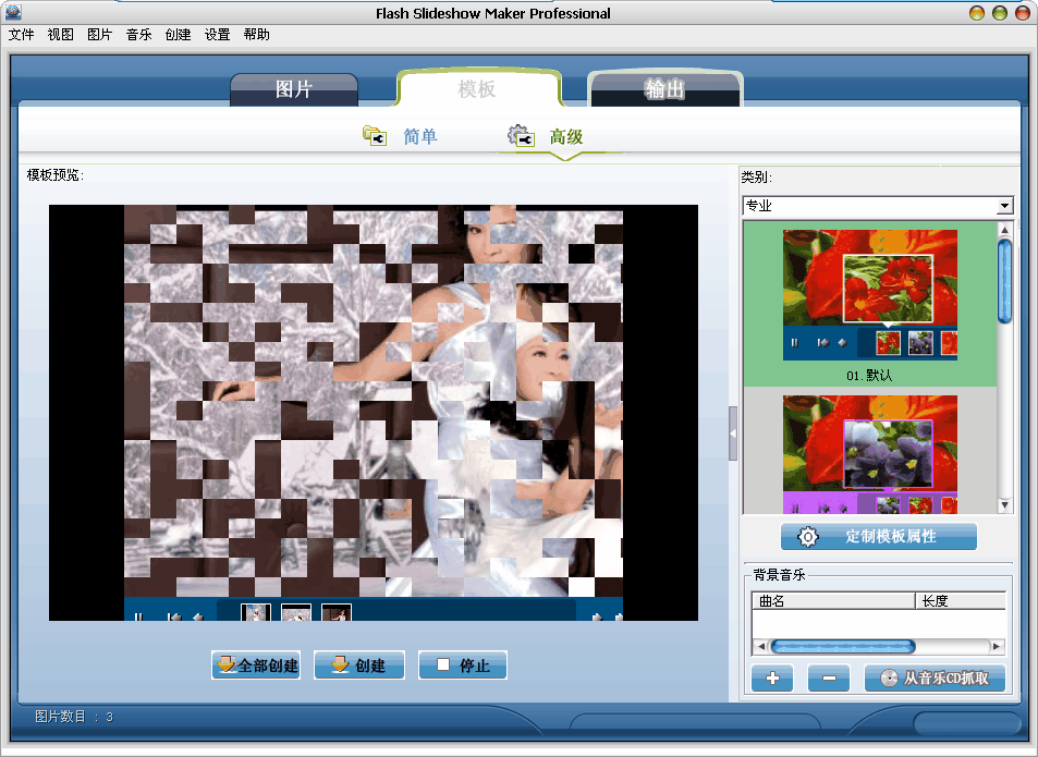 一款Flash相册创建软件,可以让用户将多张照片转变为一个flash相册,并保存成swf文件,用户还可以在相册中加入背景音乐以及特殊的过场效果。