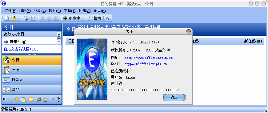 高效e人是集通讯录、日程安排、任务计划、公历农历、电子日记、便笺备忘、密码管理、网址收藏等诸多功能于一身的个人信息管理软件。软件具有集成化的界面,统一的操作方式。您无需分别打开几个不同的程序来管理您的个人事务。