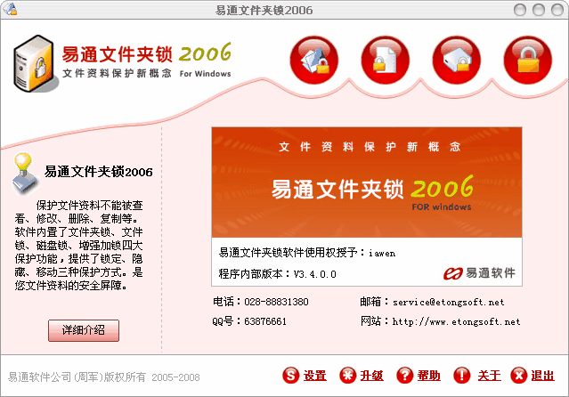 最好的文件夹加密软件、文件加密软件。集文件夹加密、文件加密、磁盘锁(锁硬盘,禁止USB等)、增强锁于一体.提供锁定、隐藏、移动三种加密方式。防删除,复制等.是您文件资料的安全屏障。 易通文件夹锁—最好的,最易用的文件夹加密软件|文件加密软件|文件夹加密工具|文件加密工具|。