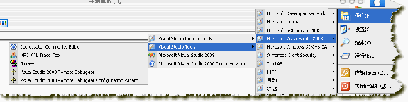 从”开始”–>”程序”–>”VS 2008″–>”Tools”里可以找到,我这里是被我拖到了快捷菜单了,呵呵,所以里面没有!