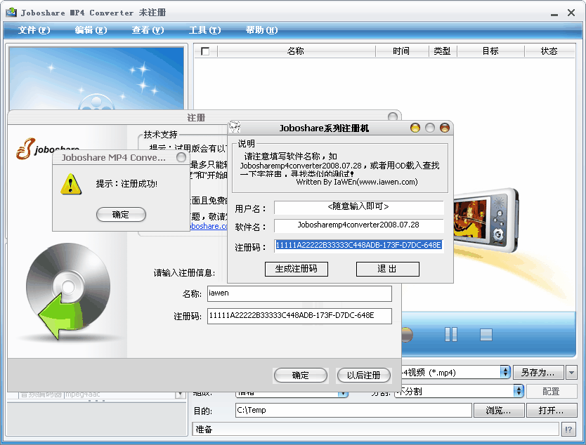2008年10月1日前给公司写信者,可免费获得正式版注册码。