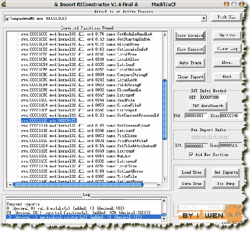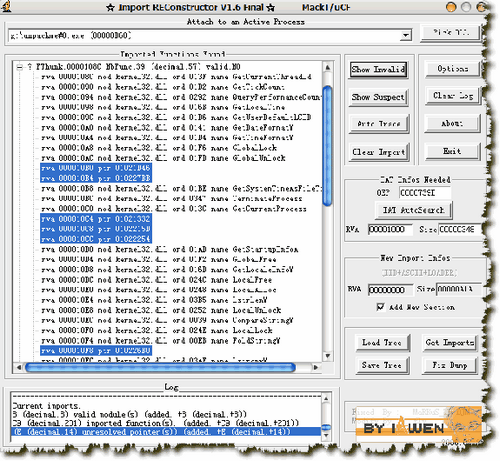 先不急着DUMP出来,我们用ImportREC修复一下看看IAT,如下图: