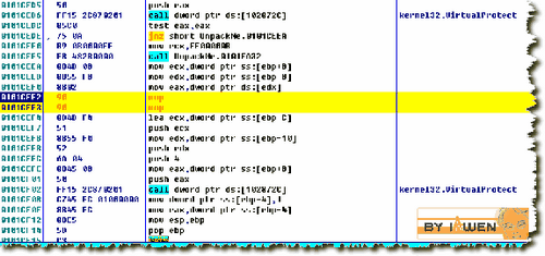 0101CED6 FF15 2C870201 call dword ptr ds:[102872C] ; kernel32.VirtualProtect