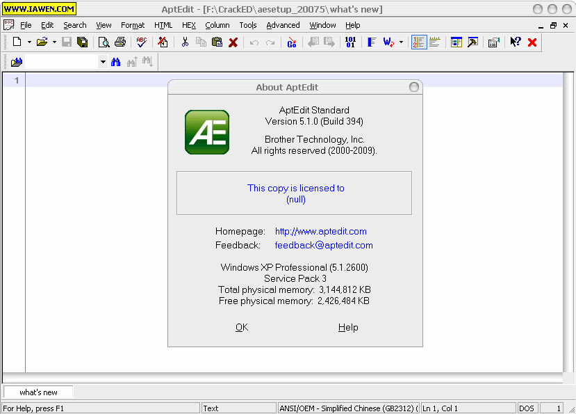 在windows2003下,非管理员权限,剪切文字,就自动退出aptedit了。超级大的bug,原版安装的不会这样。