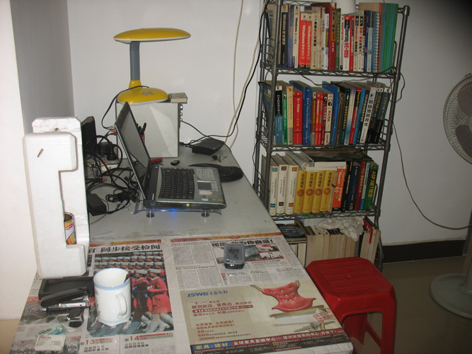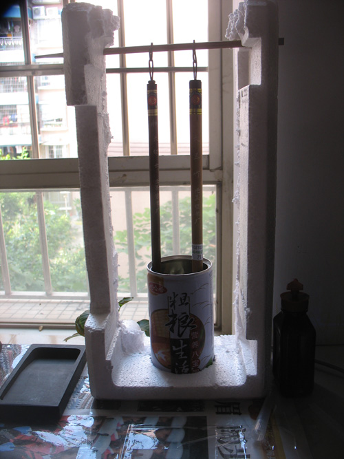 发布于2009年10月3日-0001年11月30日 由iawen我的小小"书房" 最近一段时间,心情都不是很好,一边也想着改变一下自己的生活习惯,于是就重拾起自己以前的爱好:书法.趁着国庆假期,自己小小的布置了一下自己的”[color=#FF0000]书房[/color]”: 1、整体布局(房间一角): 2、一个简易的毛笔架(用泡沫和一个八宝粥瓶做顾的):