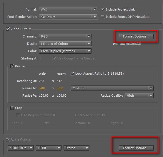 3、留意2个格式选项,点击任意一个进入格式设置,其中视频的编码不能采用上面的几个常规设置,如DV PAY,否则前面的设置的视频尺寸就会变到常规尺寸!