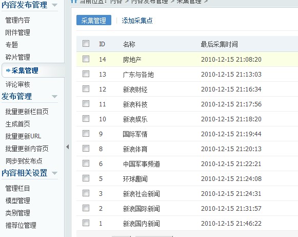 有需要的只要下载附件,然后在后台“采集模块”里一个个的导入,然后就可以采集相应的新闻到对应栏目了。