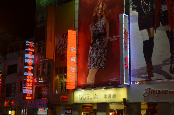 陪老婆逛了一下北京路,也顺便帮老婆拍了几张照片,不过老婆大人的耐性实在不怎么样,本来想将相机设置成手动模式,好好摸索一下单反的晚上拍照,后来只好用自动模式,然后将场景设置成“夜间人像”,用AF-S NIKON 18-55mm 1:3.5-5.6G的镜头,拍的确实不怎么样,哎!凑合着上一张图吧: