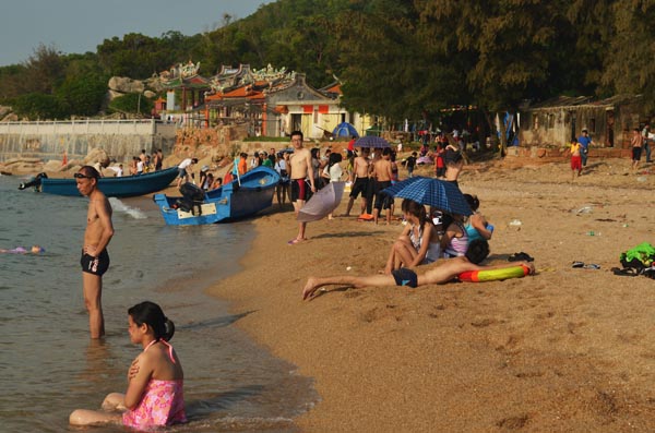 其实,岛并不大,海滩也并不那么美丽,游人留下的斑斑痕迹让它失去了它原来的面容。但那天、那海,还是那么的包容!我们尽情的在海水里悠游、在沙滩上嬉戏。