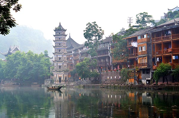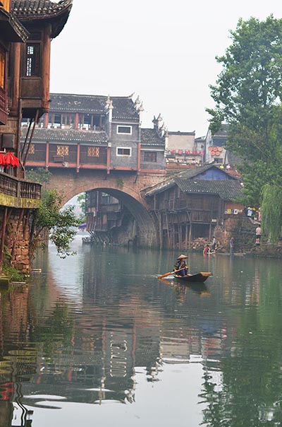 于清晨,凤凰的两个清晨,我才能对自己说,我发现了凤凰。于那微微的晨光之中,牵着马儿载着物体的人在江边踟躇,小船儿在沱江的波光中顺流而行,有人在江边清洗着衣物,还有如我般早起的游人,也在江畔寻觅着各自的期待┈┈于喧嚣中寻觅那一份清静,于清静中寻找那一份内心的躁动,在躁动中,收获着自己的期待!