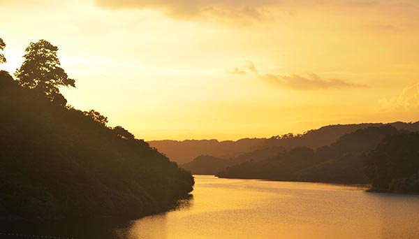 夕阳之下,映照湖泊,满眼霞彩。于余晖中合影,披一身霞光归去。