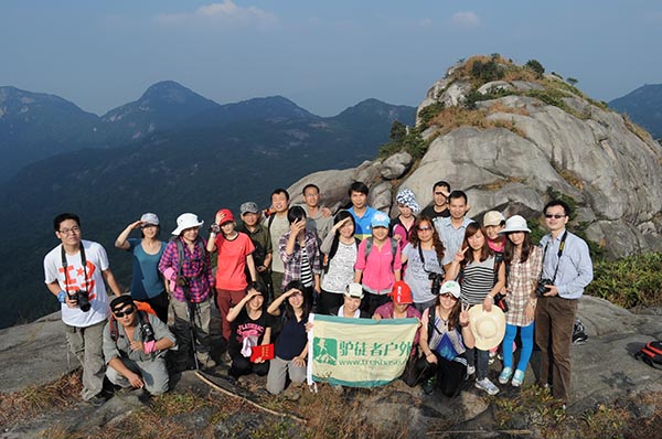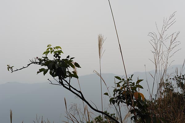通天蜡烛已经是第二次登了。第一次时,我没有登上山顶,虽然那天下很大的雷雨。没登顶而下,很是遗憾,但返程的时间很充裕,一路风景让我流连忘返。第二次终于登顶已是入秋,那天蒙蒙的,远山隐隐约约,感觉总不如第一次。