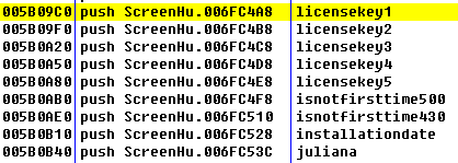 005B09C0 68 A8C46F00 push ScreenHu.006FC4A8 ; licensekey1