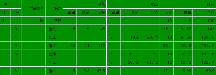 根据上表的计算,本月的平均单价及发出存货成本如下: