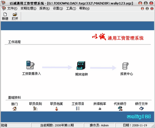 一套运行于Windows 9X/2000/NT/XP的通用型动态工资管理系统。该系统具有操作简便、使用灵活、界面友好等特点,特别适合于各机关、企事业单位、工厂、学校等使用。